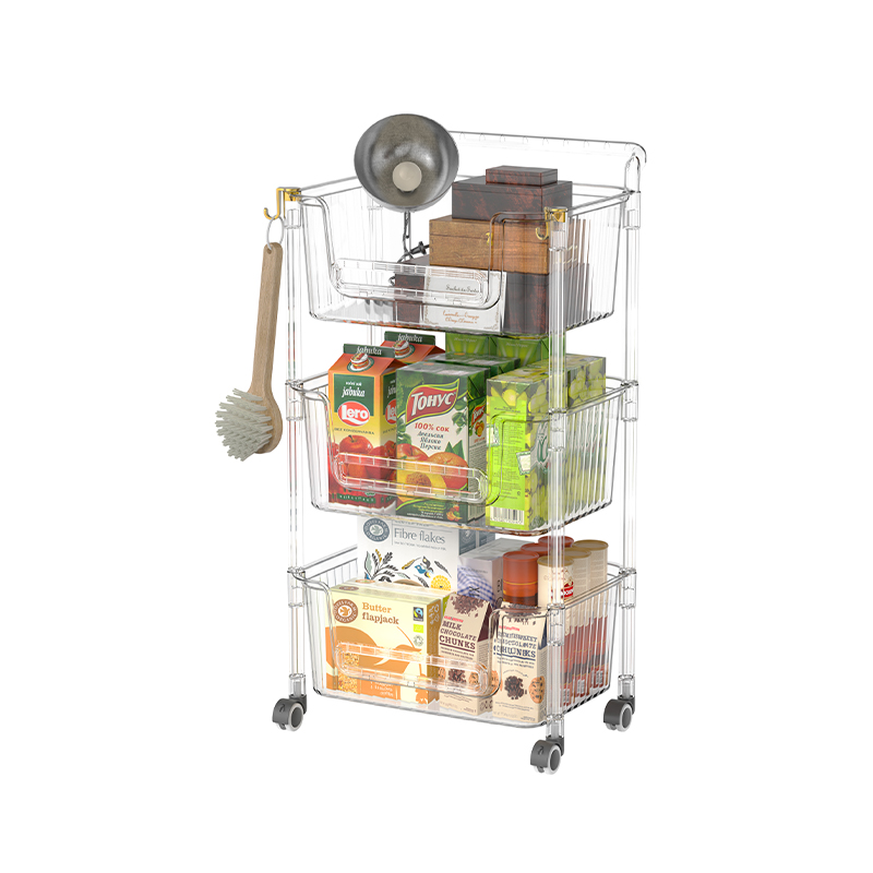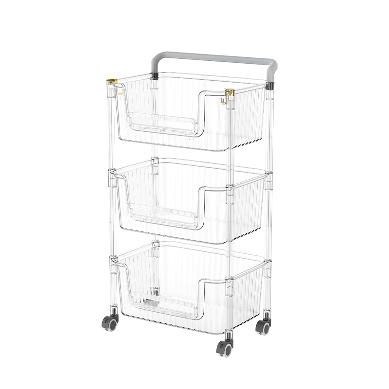 Il design trasparente è una caratteristica di questo carrello di archiviazione. Le piastre di plastica trasparenti possono visualizzare chiaramente gli articoli posizionati su ogni scaffale di stoccaggio, consentendo agli utenti di trovare rapidamente gli articoli di cui hanno bisogno, risparmiando il tempo e l'energia necessari per trovare gli articoli. Ciò è importante per le situazioni in cui è richiesto un rapido accesso agli articoli, ad esempio in cucina per conservare spezie e ingredienti o in ufficio per conservare documenti e forniture per ufficio. Il design trasparente aumenta anche la pulizia visiva, rendendo lo spazio generale più ordinato.
